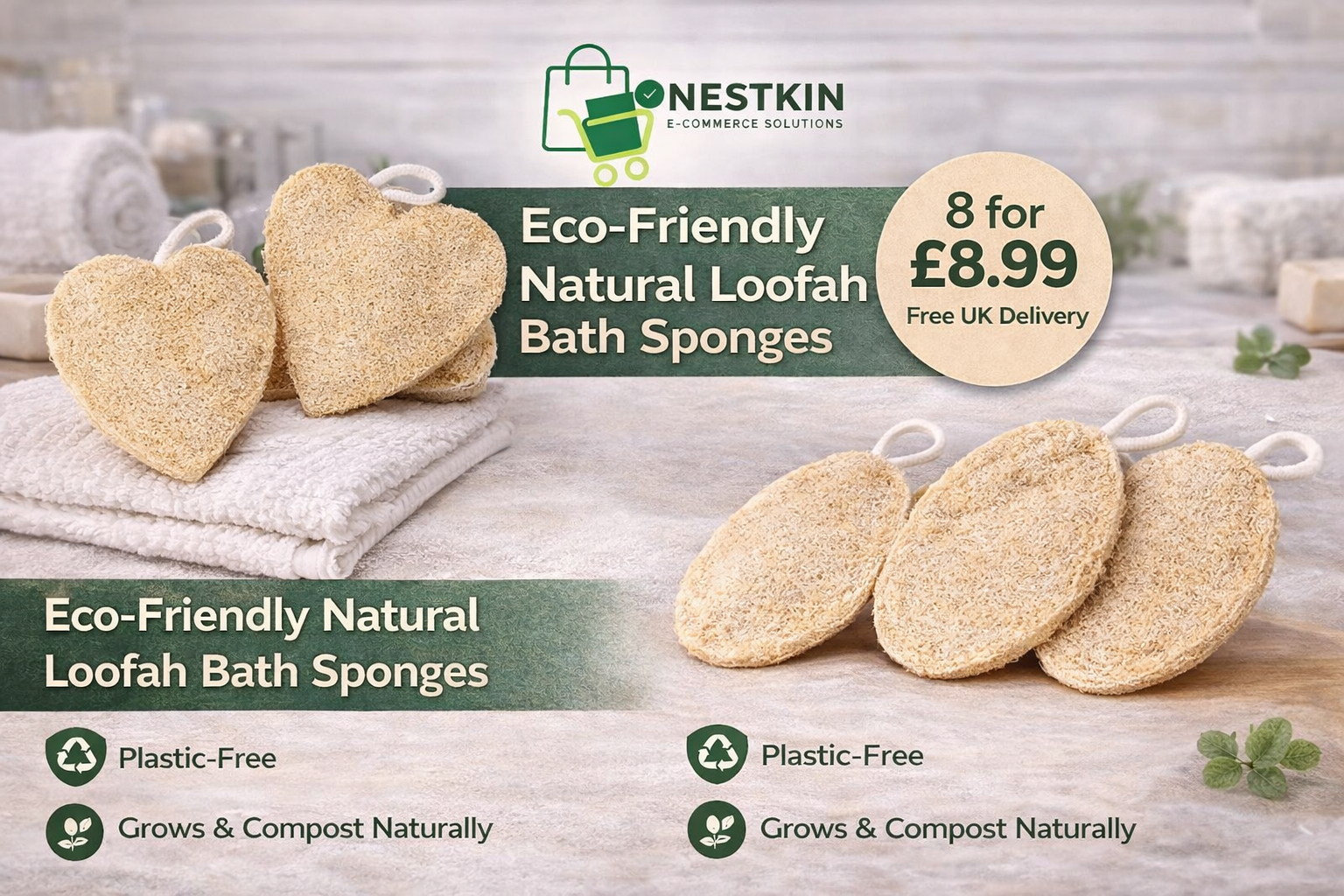 Nestkin products are selected to help households make simple, sustainable swaps without sacrificing quality or comfort. Our natural loofahs offer an affordable, eco-friendly alternative to plastic bath products.